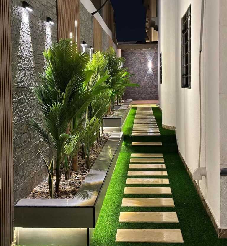 4. تنسيق الفلل والقصور: تُظهر الشركة إبداعها في تصميم وتنسيق المساحات الكبيرة مثل الفلل والقصور. تركز على اختيار أفضل المواد والعناصر الطبيعية مثل الصخور، المياه، والإضاءة لتقديم تصميمات فاخرة ومبهرة تعكس الفخامة والتميز.